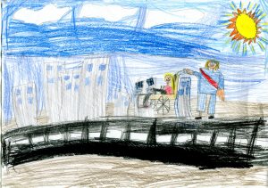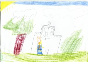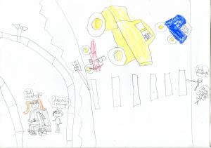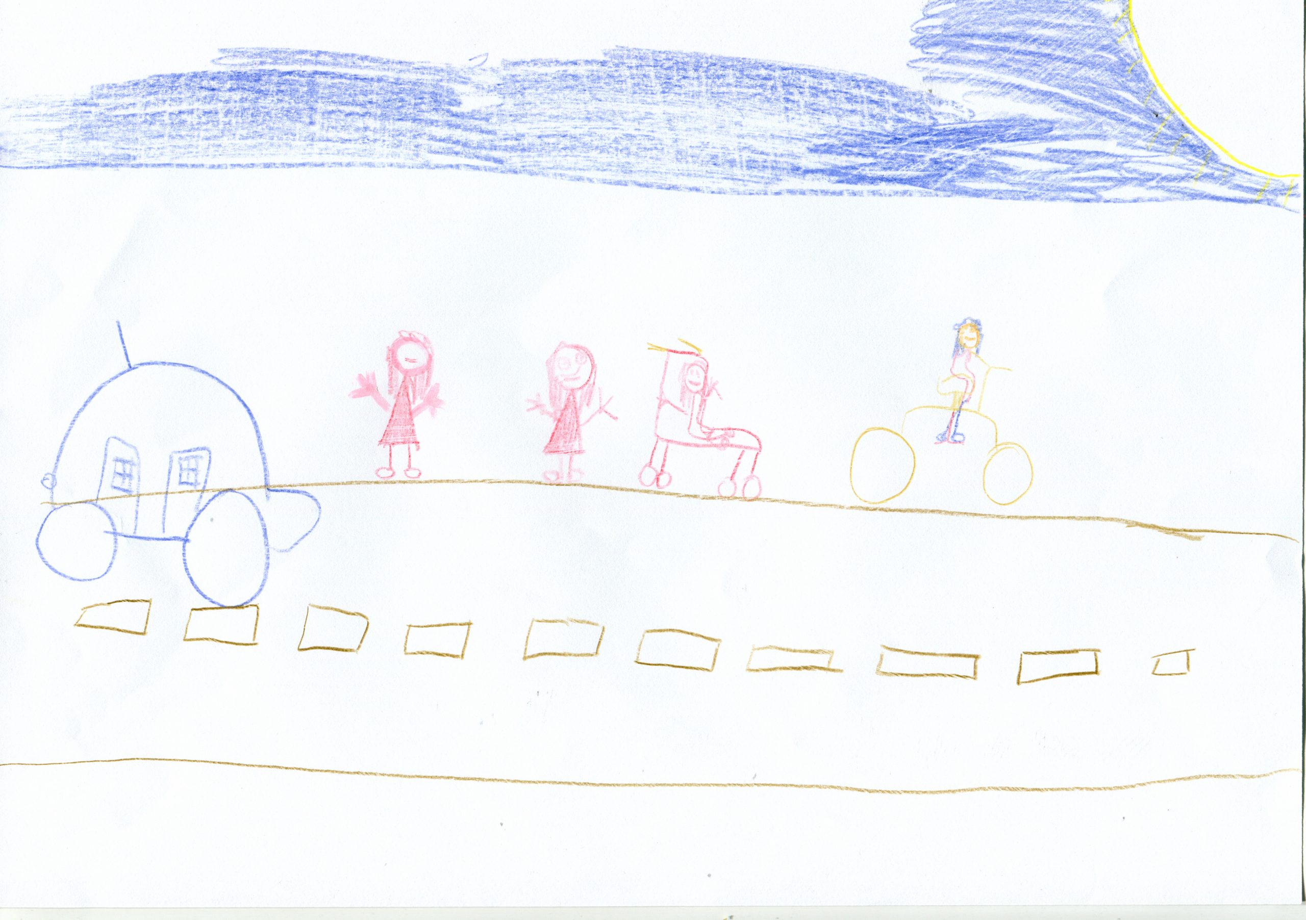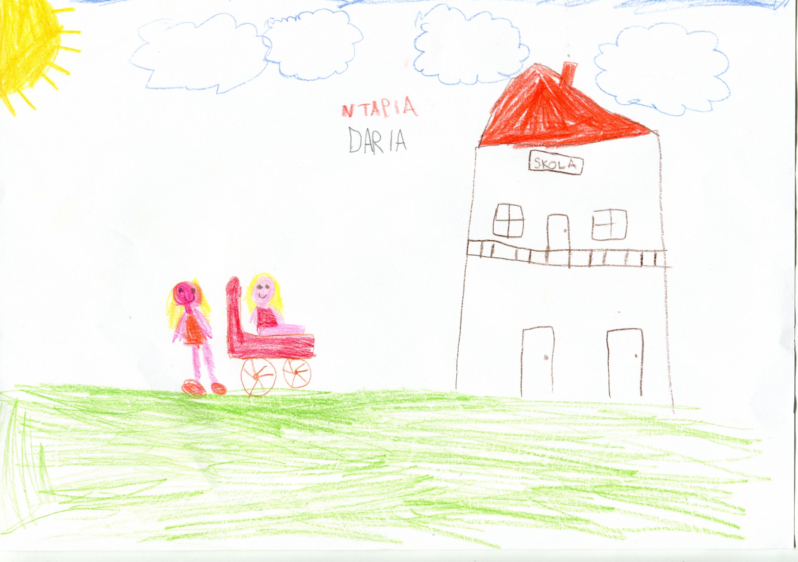 Po przeczytaniu bajki uczniowie wykonali ilustrację, jak należy pomagać osobom z niepełnosprawnością.