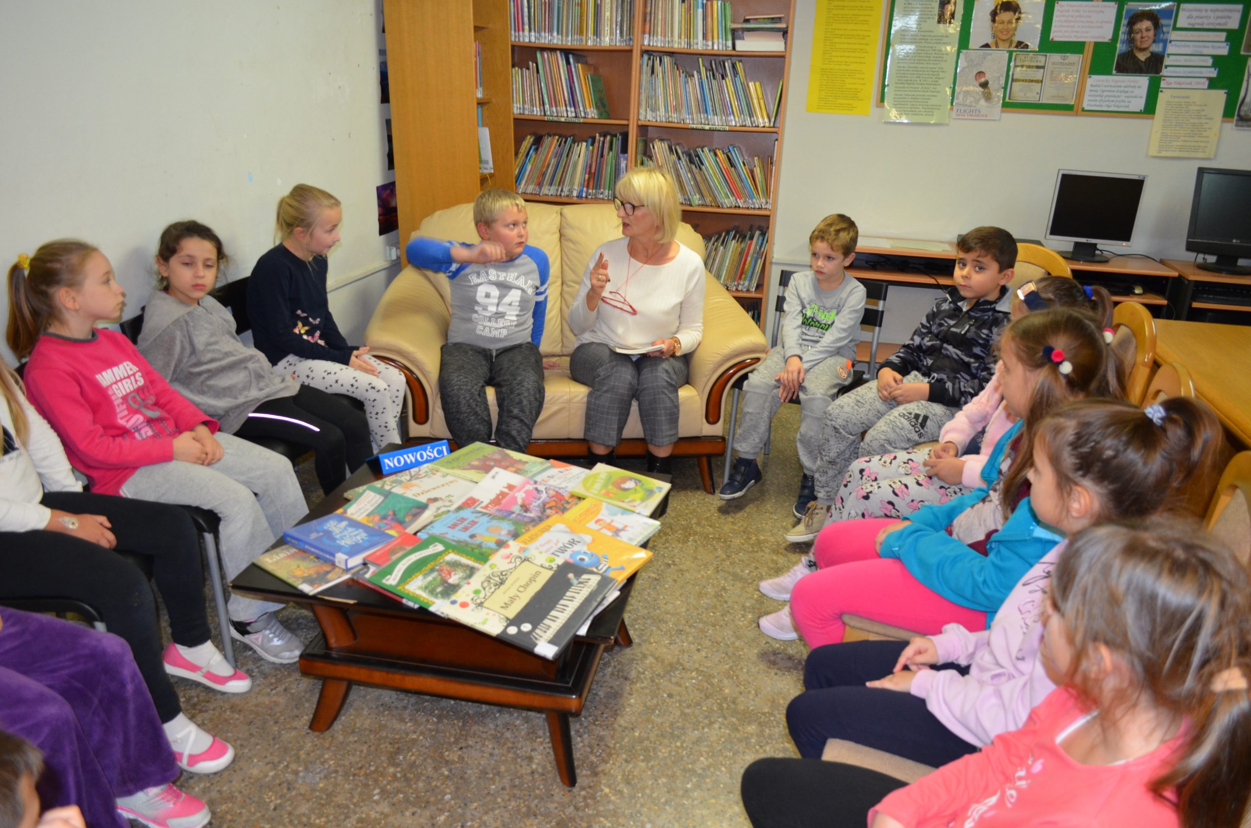 Wspólne czytanie poprzedziła pogadanka na temat, czym jest niepełnosprawność, jak pomóc osobom z niepełnosprawnością oraz jak zachowywać się w kontaktach z nimi. Uczniowie kl. I-III chętni odpowiadali na zadawane pytania bibliotekarza i wykazali się dużą znajomością tematu stwierdzając, że niepełnosprawni mają takie same potrzeby, jak my, że chcą być traktowani na równi z pełnosprawnymi osobami.
