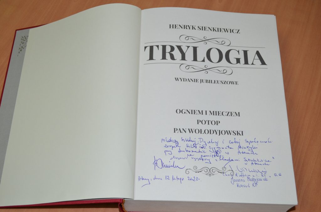 Mieliśmy ogromną przyjemność i zaszczyt gościć w naszej szkole wystawę zatytułowaną „Śladami Sienkiewicza”, która została przygotowana przez Instytut Badań Literackich Polskiej Akademii Nauk z udziałem Archiwum Państwowego w Siedlcach z okazji Roku Sienkiewiczowskiego ogłoszonego przez Senat RP w stulecie śmierci pierwszego polskiego noblisty. Uroczyste otwarcie ekspozycji nastąpiło 14 lutego 2020 r. w budynku Zespołu Szkół im. Zygmunta Mineyki przy Ambasadzie Rzeczypospolitej Polski w Atenach. W uroczystości wzięli udział pracownicy Ambasady Rzeczypospolitej Polskiej w Atenach: Chargé d’affaires Pan Tomasz Wiśniewski, Pani Konsul Joanna Matyjasiak, liczni przedstawiciele stowarzyszeń i organizacji polonijnych, Pani Dyrektor Beata Panagiotopoulou, pracownicy szkoły, uczniowie Zespołu Szkół oraz ich rodzice.