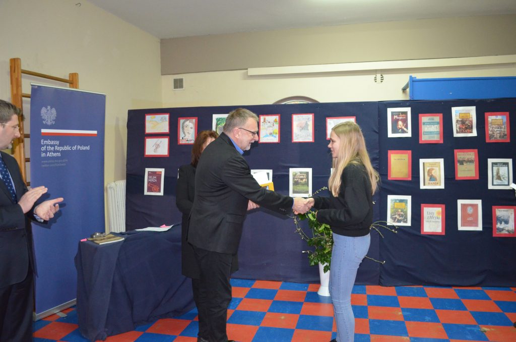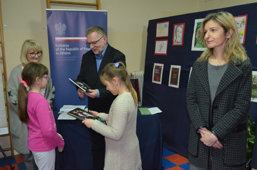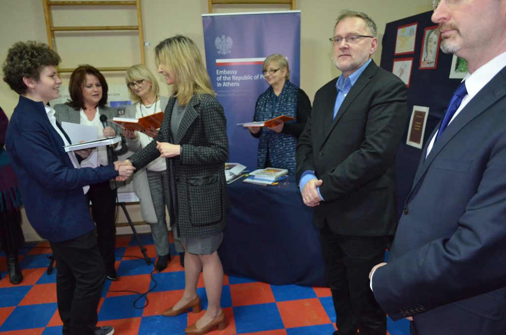 Podczas uroczystości zostały wręczone laureatom szkolnych konkursów czytelniczych i plastycznych niezwykłe i bogato zdobione wydania dzieł Henryka Sienkiewicza. Nagrody zostały ufundowane przez Ambasadę Rzeczypospolitej Polskiej w Atenach.