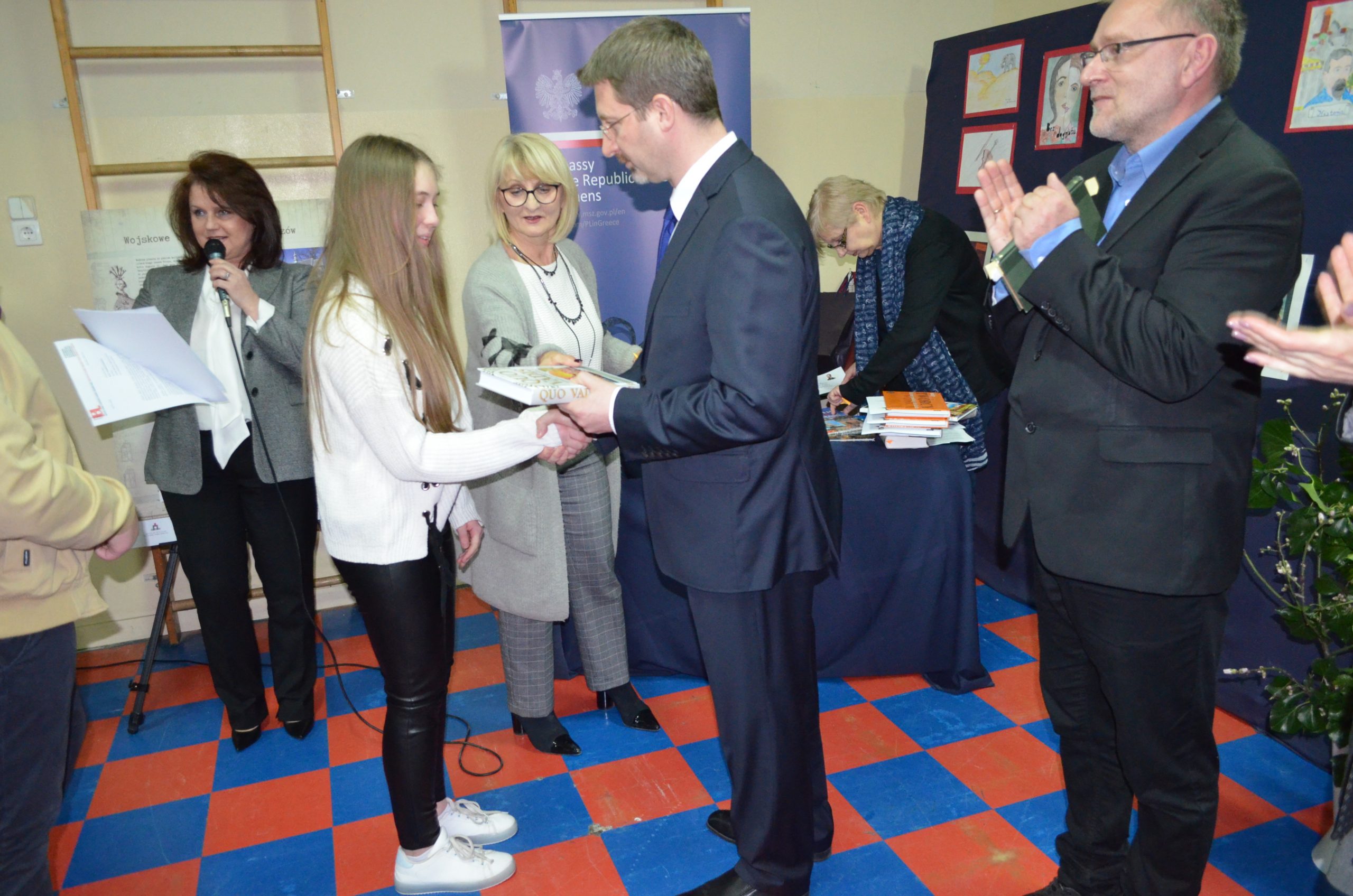 Podczas uroczystości zostały wręczone laureatom szkolnych konkursów czytelniczych i plastycznych niezwykłe i bogato zdobione wydania dzieł Henryka Sienkiewicza. Nagrody zostały ufundowane przez Ambasadę Rzeczypospolitej Polskiej w Atenach.