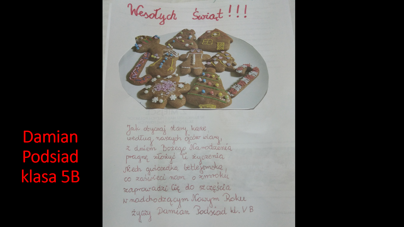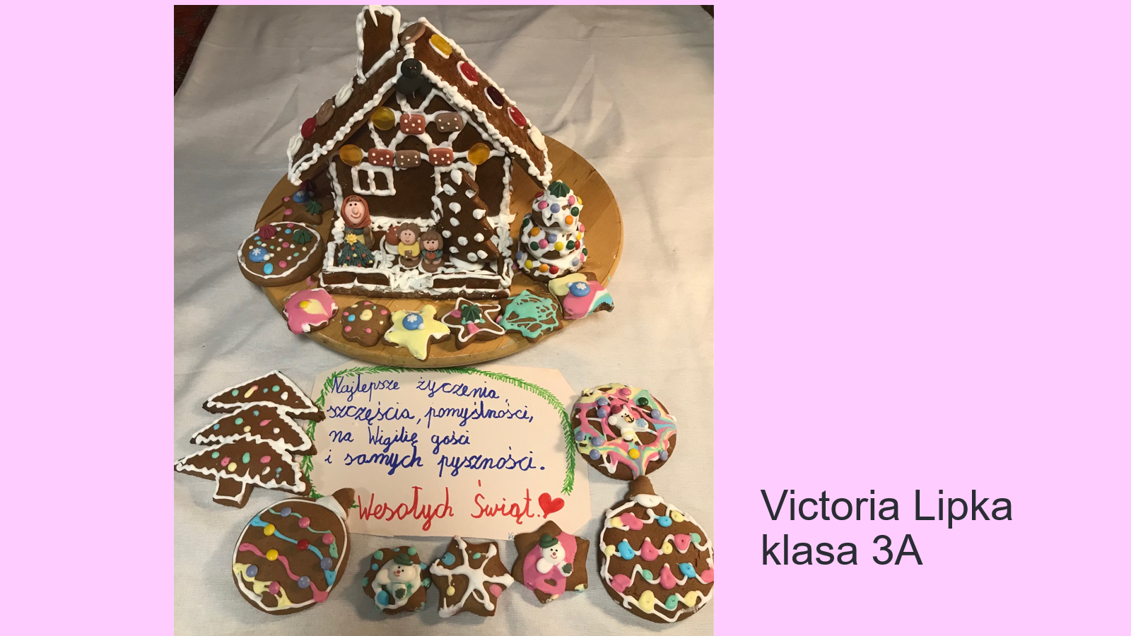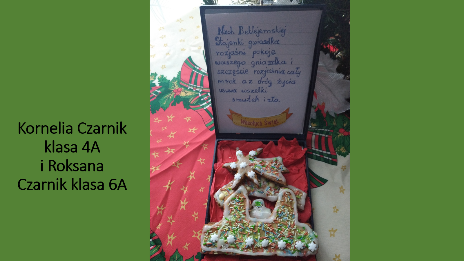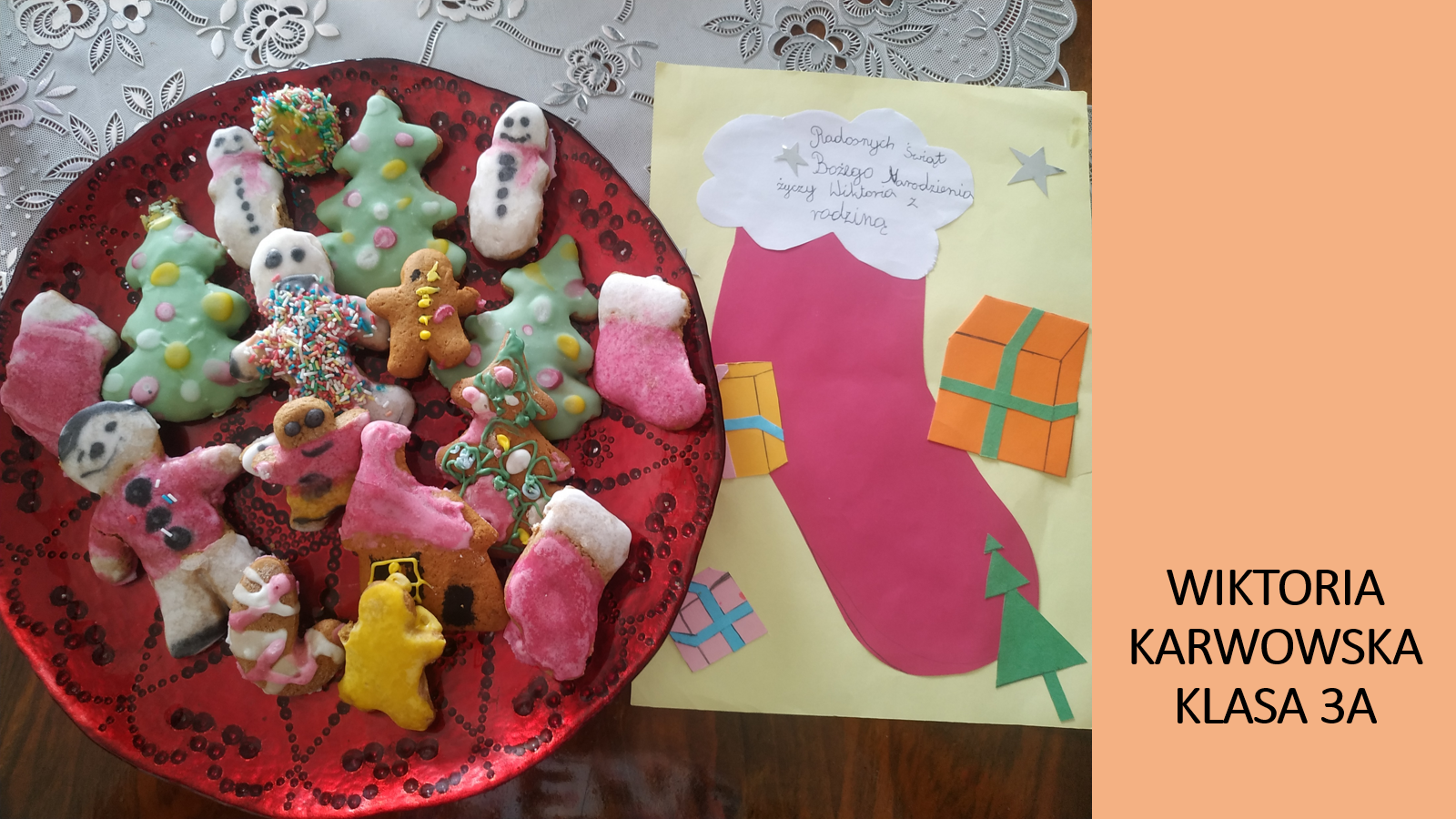 „Jeśli będzie możliwość spotkania się w szkole przed świętami, prosimy o podarowanie kilku ładnie zapakownych pierników kolegom, koleżankom i nauczycielom. Jeżeli nie wrócimy do szkoły, to podarujcie pierniki sąsiadom lub osobom, które dażycie sympatią”.