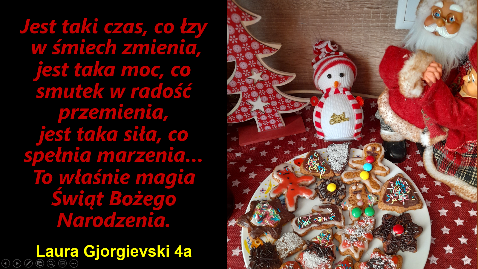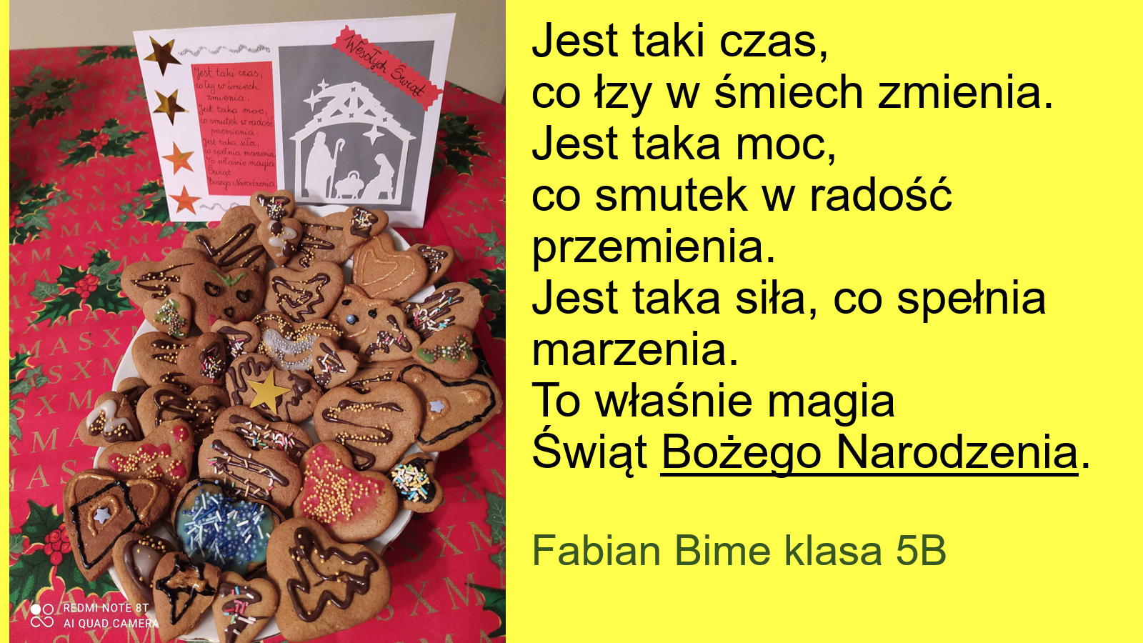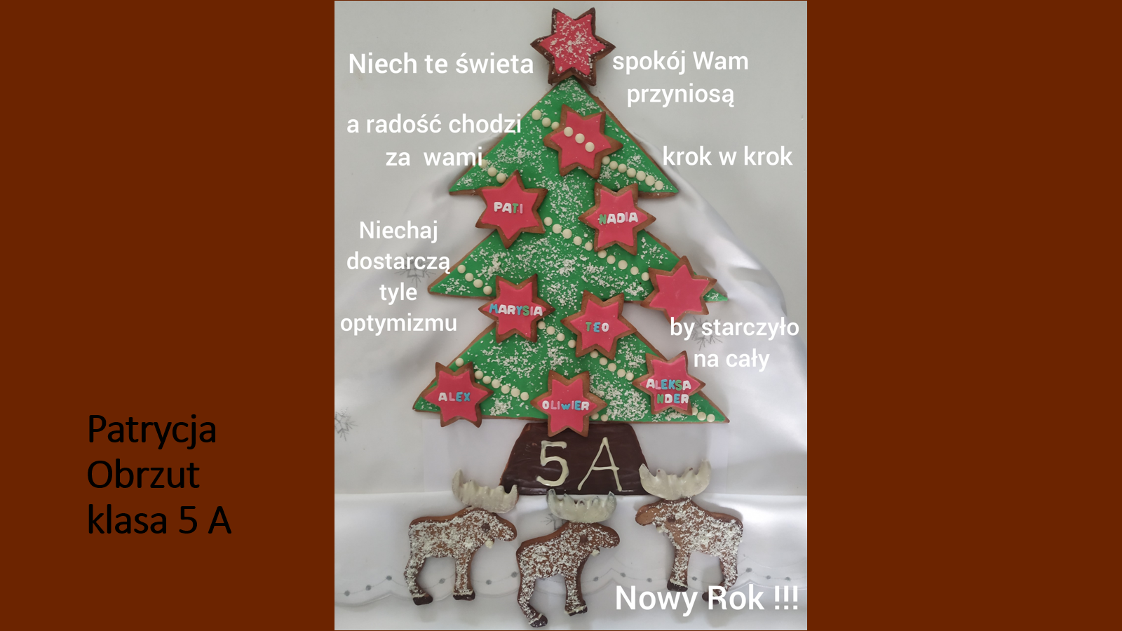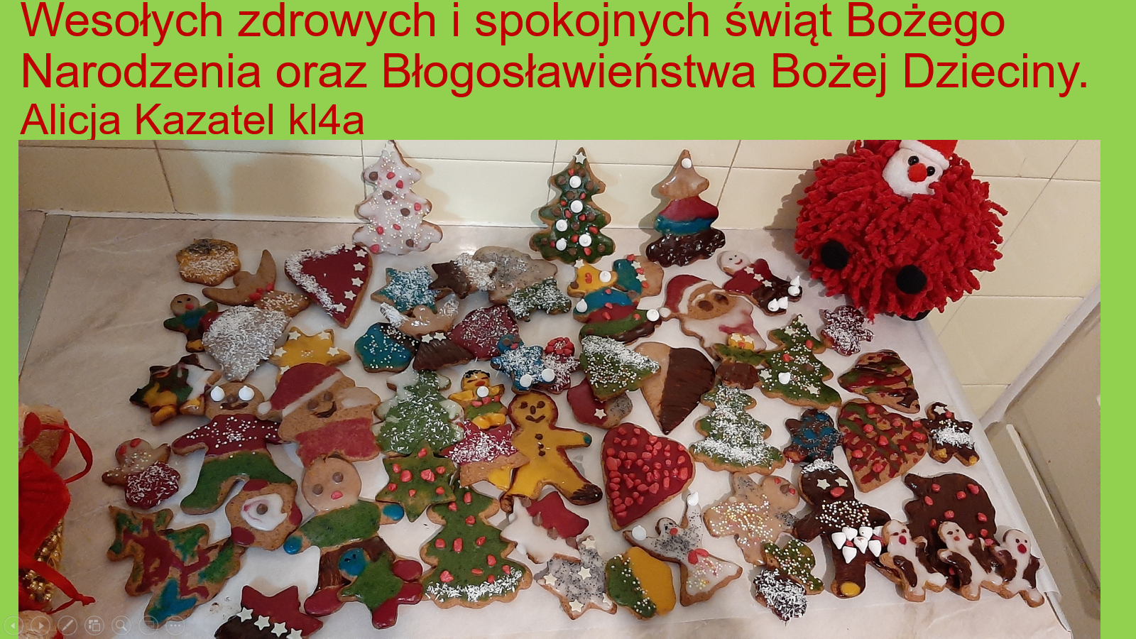 „Jeśli będzie możliwość spotkania się w szkole przed świętami, prosimy o podarowanie kilku ładnie zapakownych pierników kolegom, koleżankom i nauczycielom. Jeżeli nie wrócimy do szkoły, to podarujcie pierniki sąsiadom lub osobom, które dażycie sympatią”.
