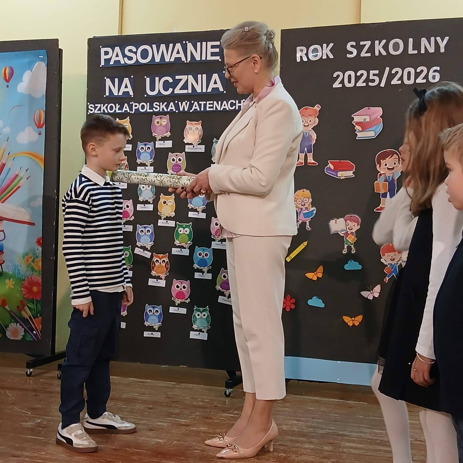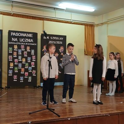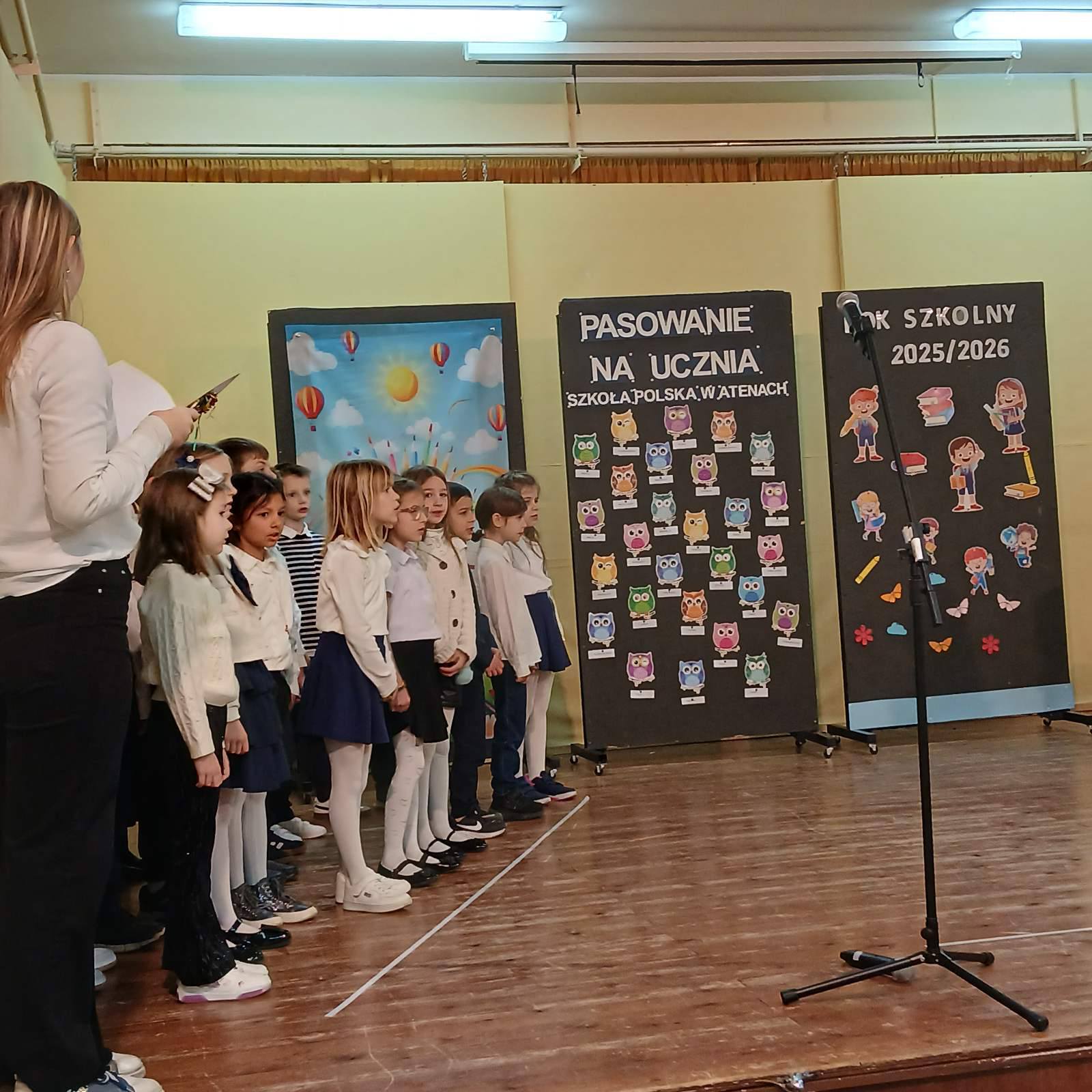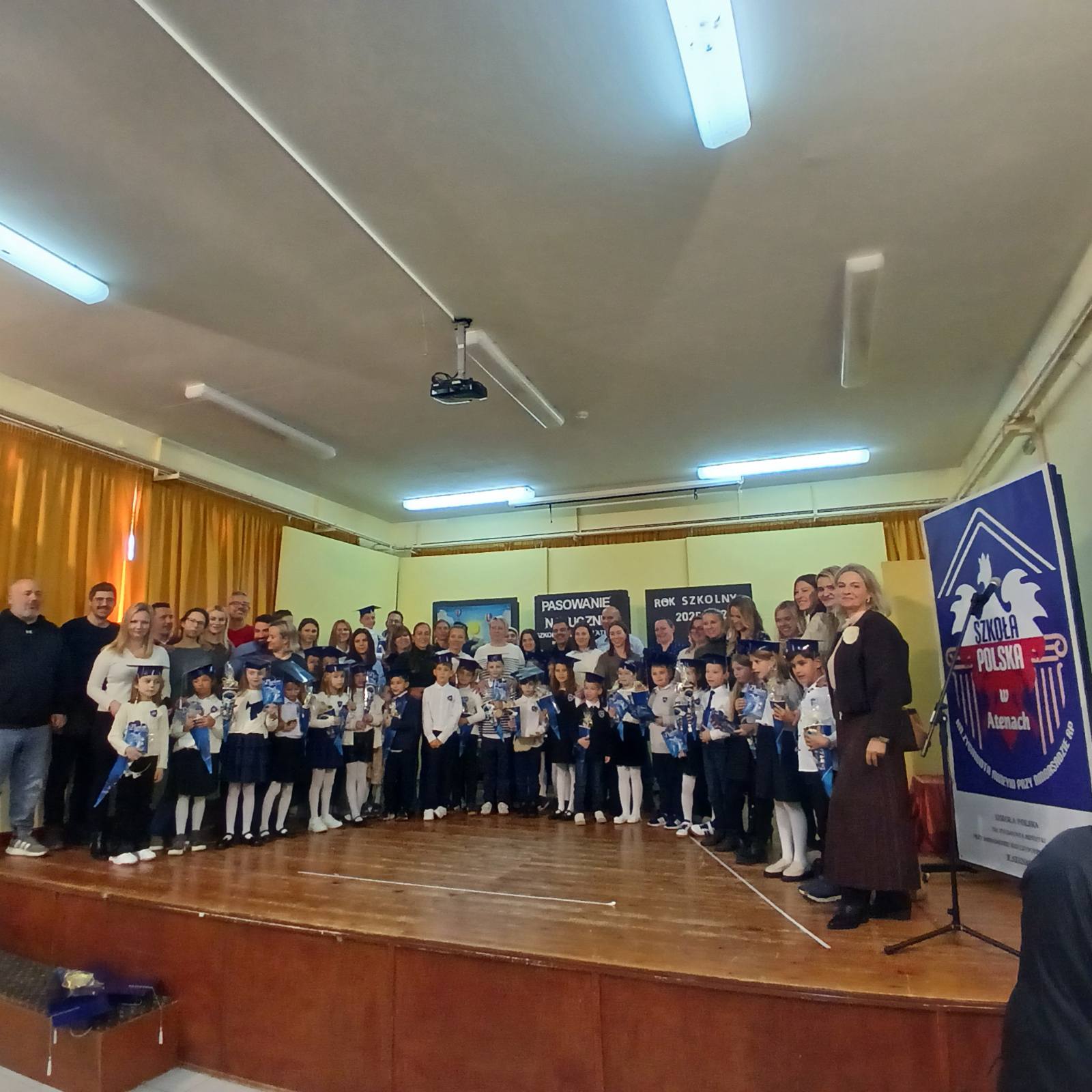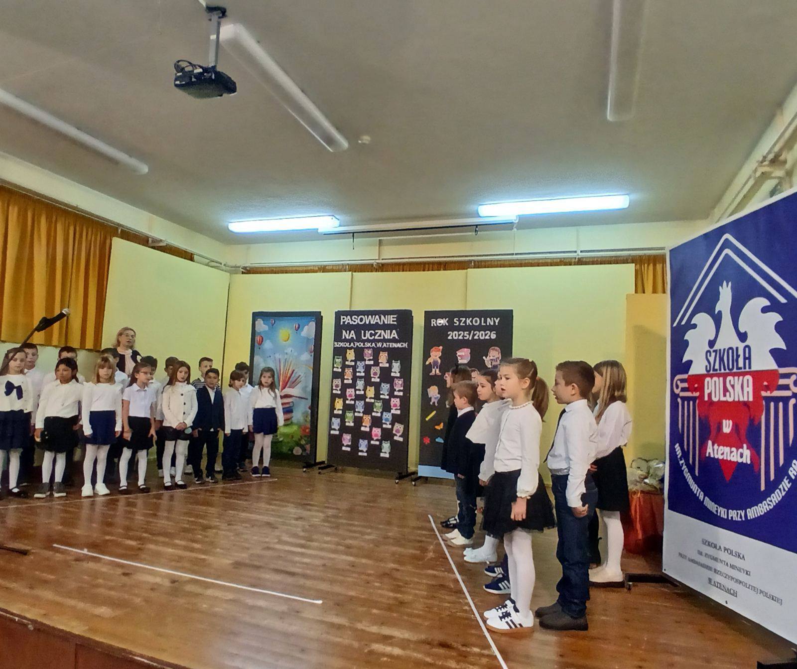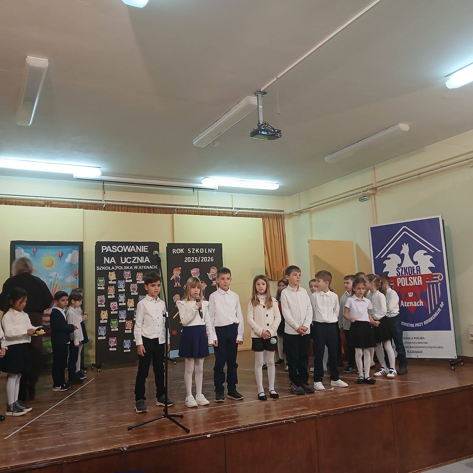 17 stycznia 2026 roku o godz.10.00 w auli szkolnej odbyła się uroczysta ceremonia ślubowania i pasowania uczniów klas I a i I b Szkoły Polskiej w Atenach. Wydarzenie to miało wyjątkowy, podniosły charakter i na długo pozostanie w pamięci uczniów, rodziców, opiekuna klas oraz zaproszonych gości.