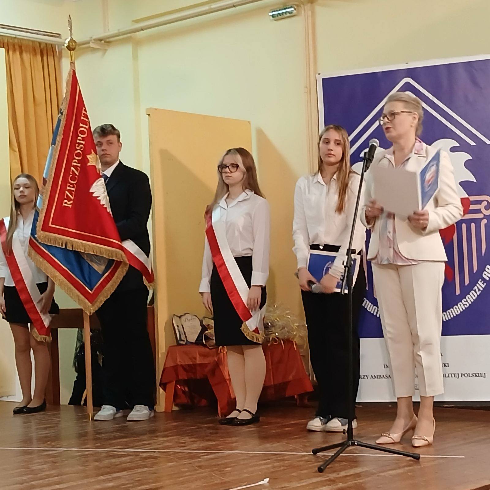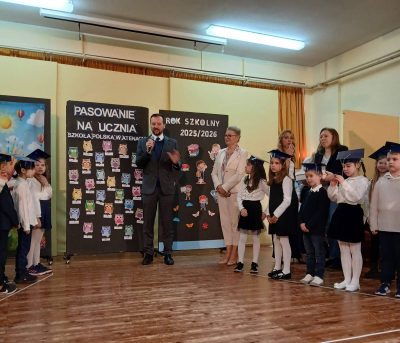 Kolejnym punktem programu były przemówienia zaproszonych gości: Pana Konsula, Przewodniczącej Rady Rodziców oraz Opiekuna klas pierwszych. Wszyscy zgodnie podkreślili doskonałe przygotowanie dzieci oraz wyjątkową atmosferę wydarzenia, składając pierwszoklasistom gratulacje i życząc im wielu sukcesów w nauce oraz wytrwałości w realizowaniu marzeń, a także nawiązywania pięknych relacji koleżeńskich w środowisku szkolnym.