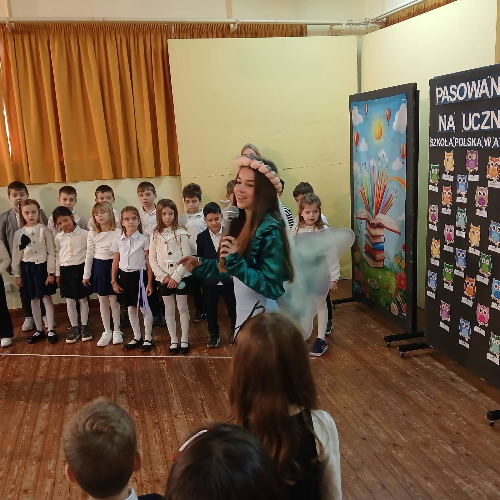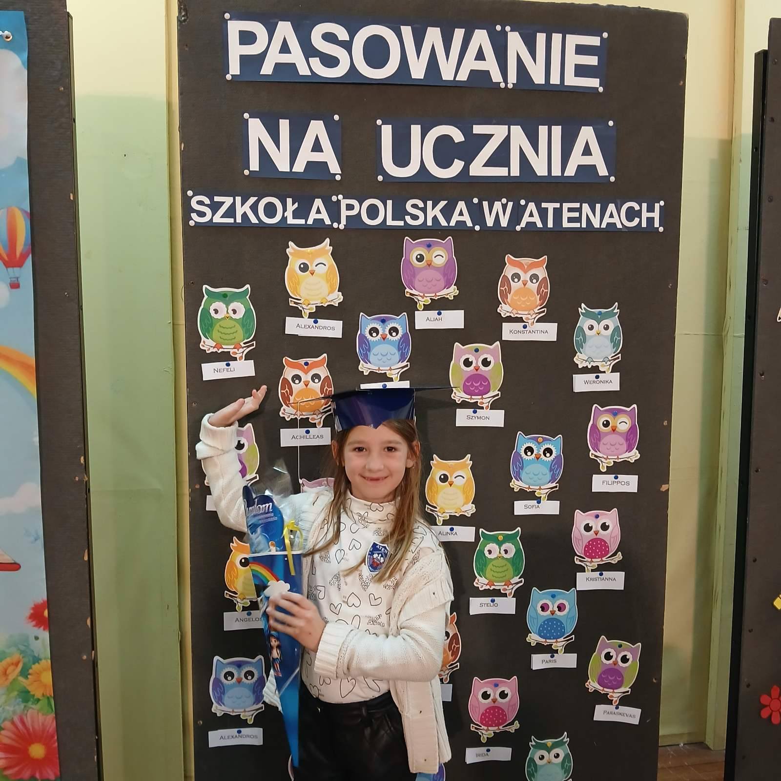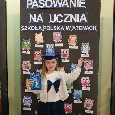 Następnie odbyło się uroczyste ślubowanie pierwszoklasistów oraz pasowanie na ucznia. Każde dziecko zostało pasowane symbolicznym, dużym ołówkiem i tym samym włączone do grona społeczności Szkoły Polskiej w Atenach.