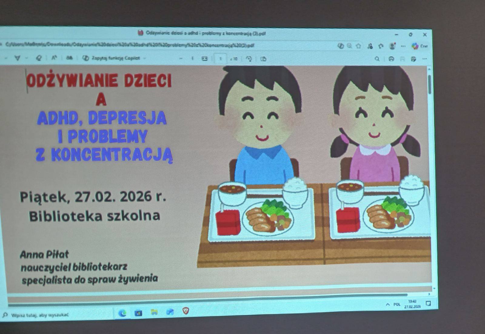 27 lutego br. w naszej szkolnej bibliotece odbyło się wyjątkowe spotkanie dla Rodziców i Opiekunów, poświęcone kluczowej roli żywienia w zdrowiu psychicznym najmłodszych.