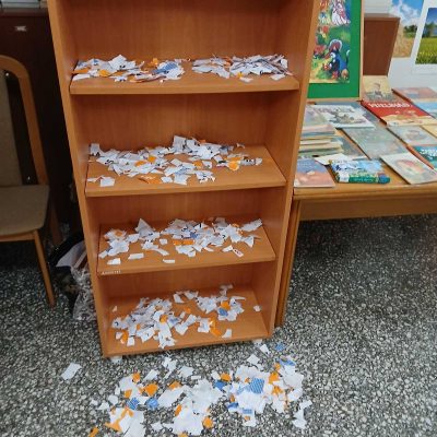 Zamiast rzędów kolorowych tomików pierwszoklasiści zastali drzwi oplecione pajęczyną i niepokojącą pustkę na półkach…