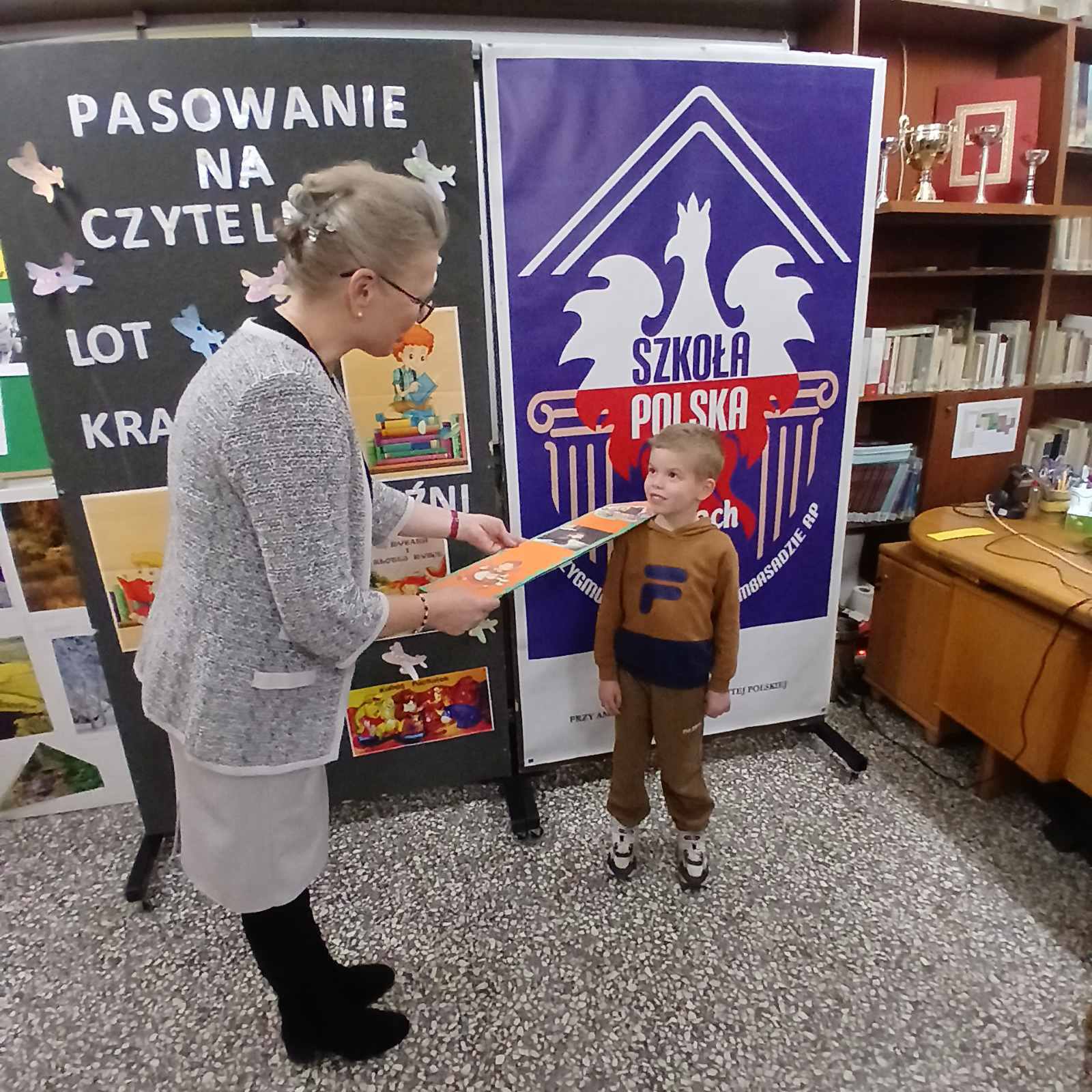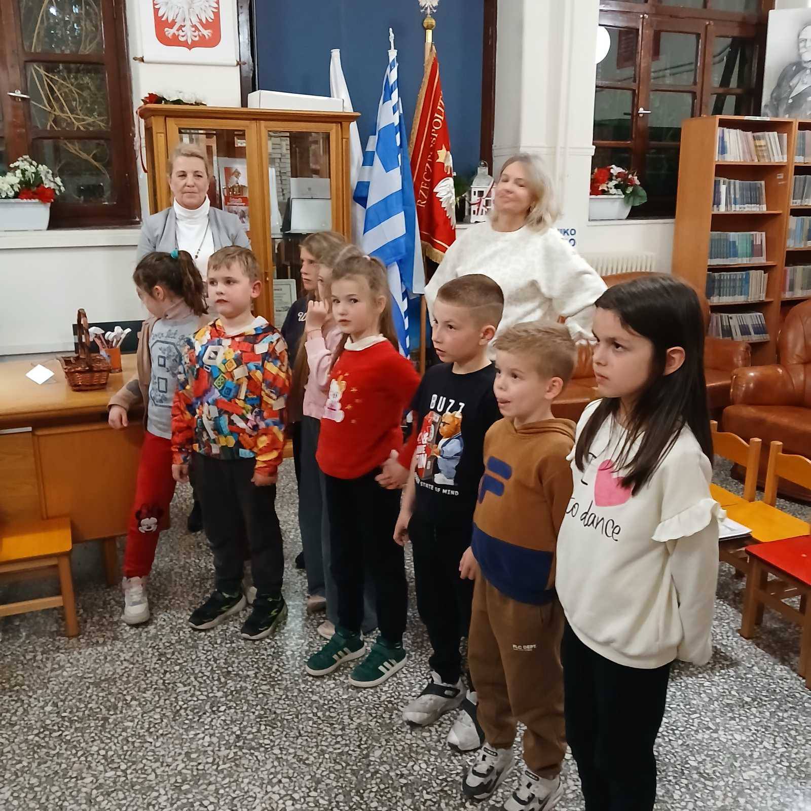 Na szczęście na posterunku czuwał nauczyciel bibliotekarz, który wezwał na pomoc uczniów klas pierwszych!