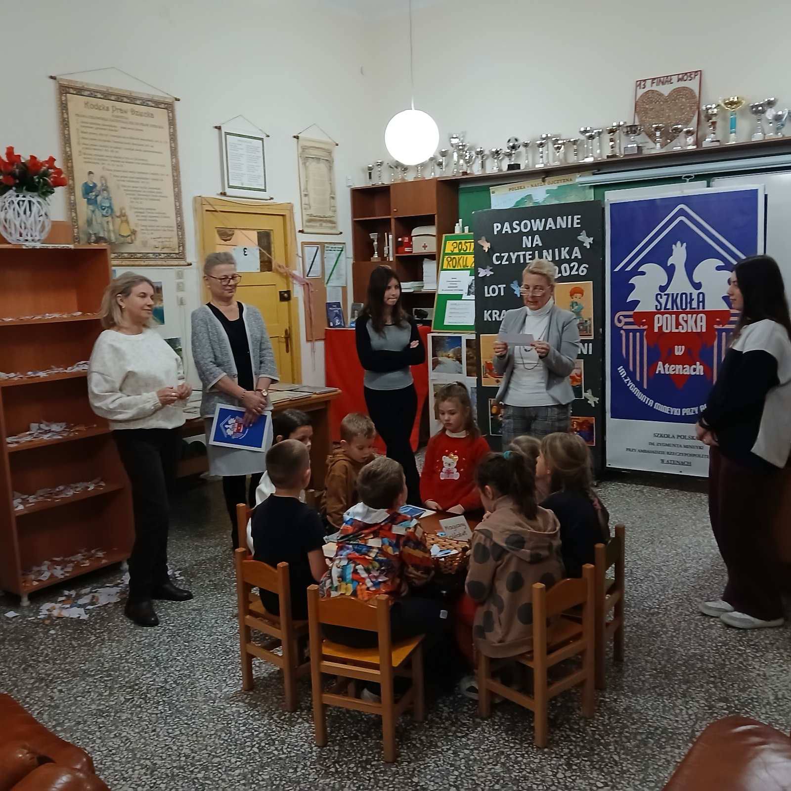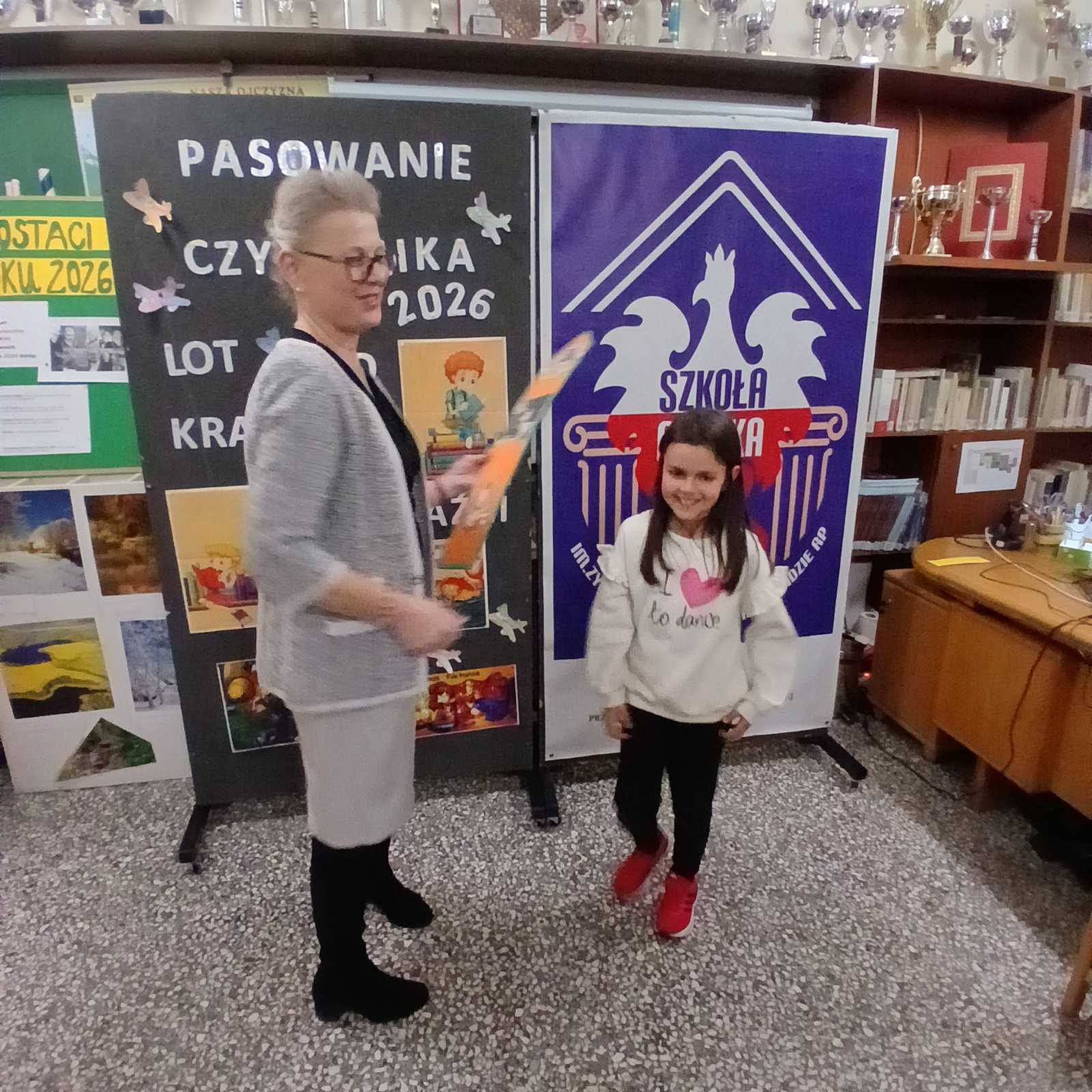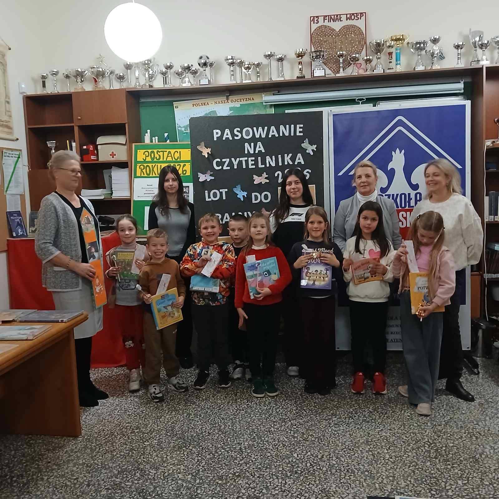 Dzieci z powagą przyrzekły dbać o książki i często odwiedzać bibliotekę. Następnie Pani Dyrektor Anna Sardis dokonała symbolicznego pasowania każdego ucznia na Czytelnika.