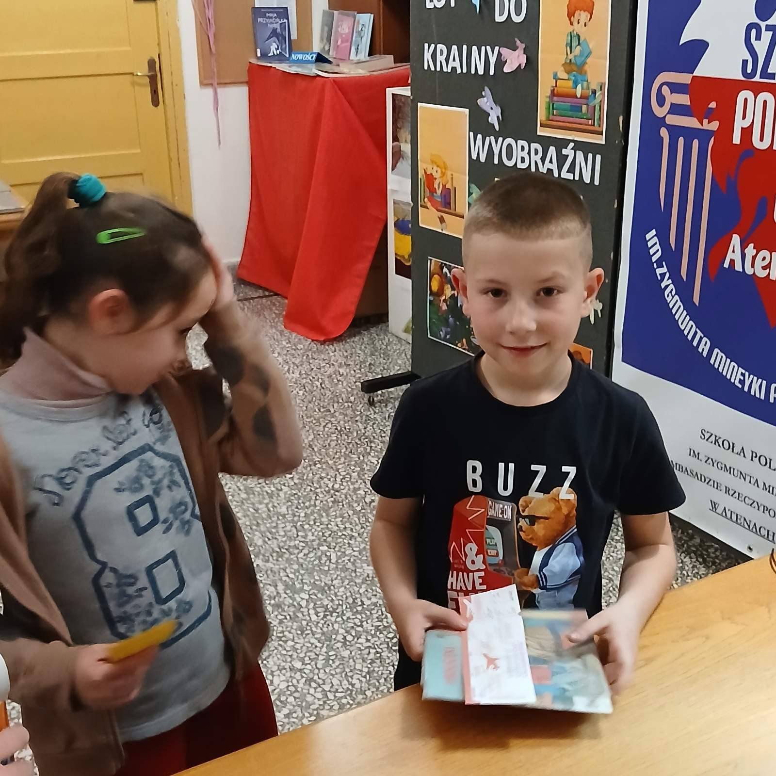 Na zakończenie każdy uczeń wypożyczył swoją pierwszą książkę.